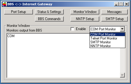 The Monitor Window. Here is where you can view the I/O from various functions of the Gateway Program.